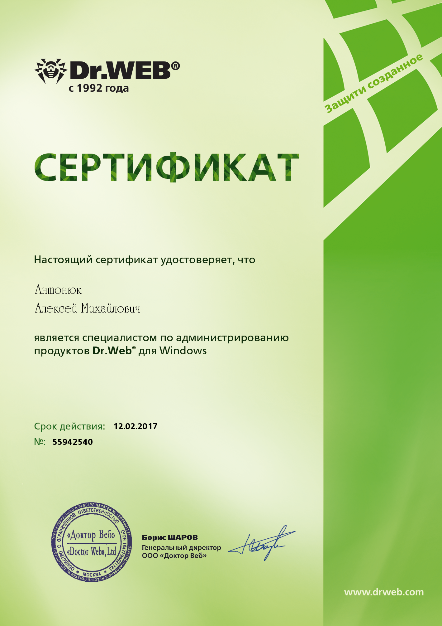 Users DWCERT-030-11DWCERT-030-11 - Услуга «Антивирус Dr.Web» для бизнеса. Сертифицированный пользователь услуги «Антивирус Dr.Web» для бизнеса.